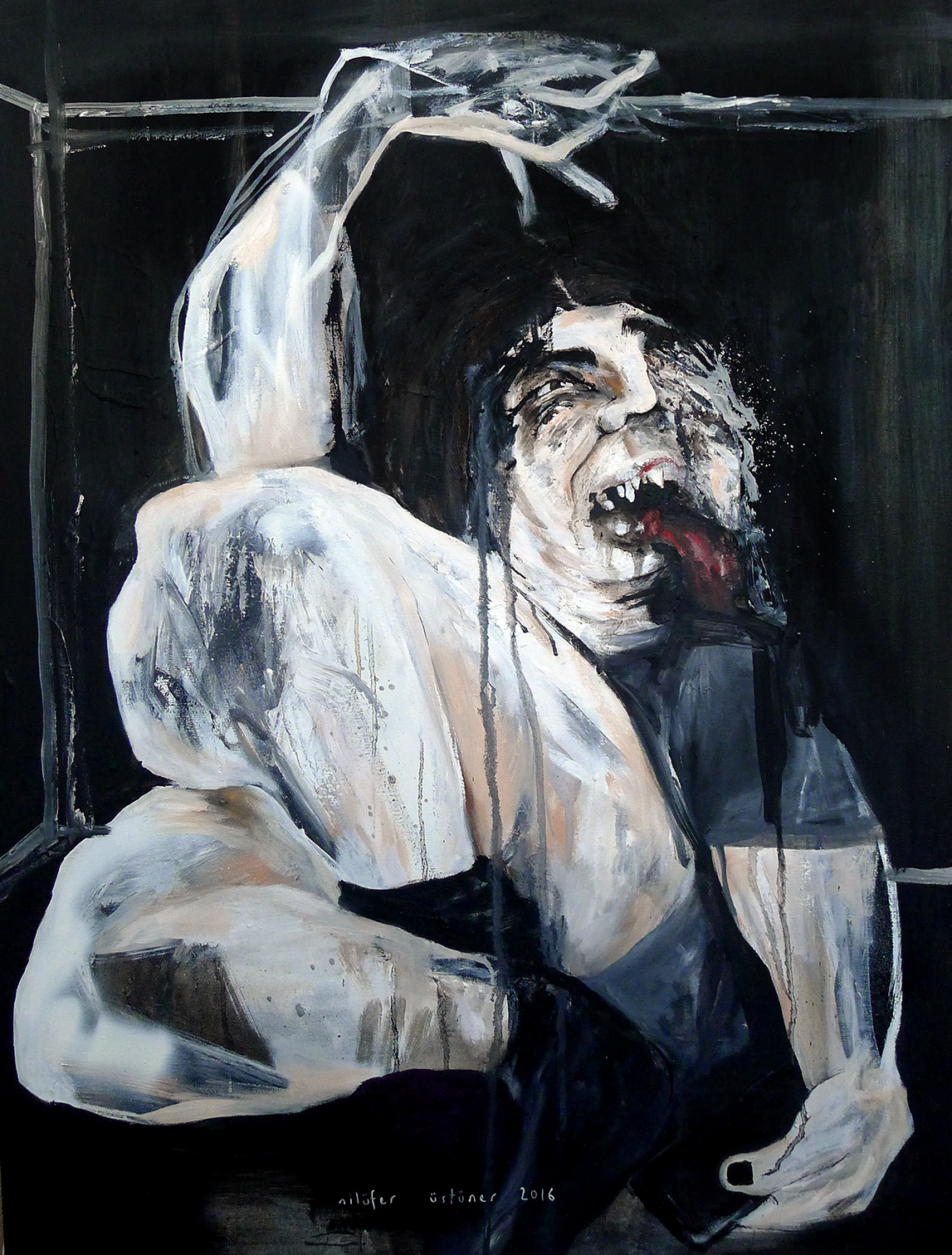 Depression series, me, under the table 80 x 60 cm Oil painting, spray painting